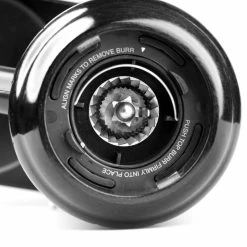 40 mm steel, conical burrs produce 3,5 – 5,5 grams of grounds with decreased amount of fines (depending on the grind setting) per second. Producer, Etzinger company, estimated burrs’ optimal exploitation at a couple of years. Cleaning is very easy because of effortless routine of removing and installing burrs.