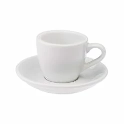 A white Espresso cup and saucer.